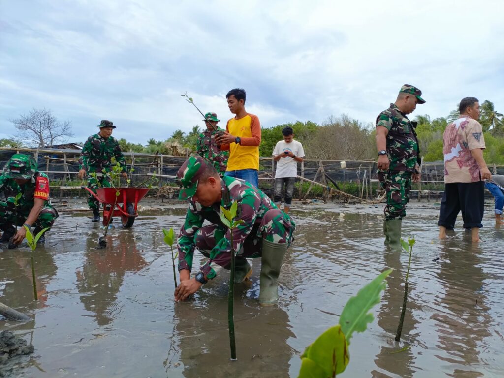 Kepulauan Selayar- Dandim 1415/Selayar Letkol Inf Nanang Agung Wibowo memimpin langsung kegiatan penanaman bibit mangrove secara simbolis di Dusun Barang-barang Desa Lowa Kecamatan Bontosikuyu, Sabtu (9/3/24).