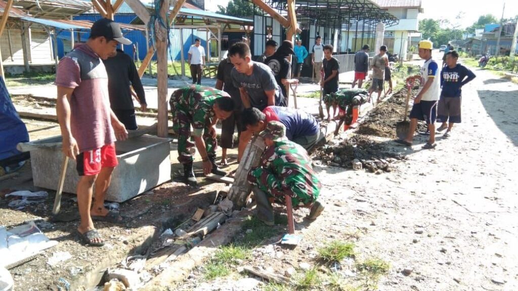 Dalam karya bakti ini personel Koramil bersama Bhabinkamtibmas dan masyarakat membersihkan pasar, selokan, bahu jalan yang rawan akan terjadinya banjir serta penyakit yang dapat mengganggu kesehatan warga.