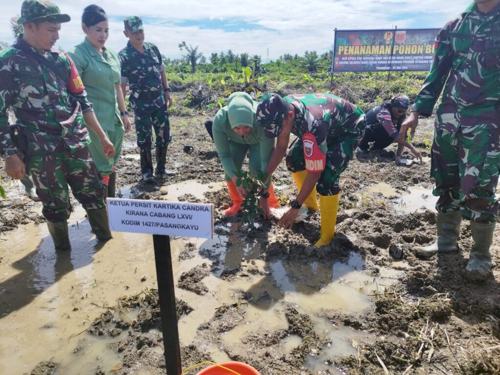 PASANGKAYU – Dalam rangka mendukung Program Ketahanan Pangan Nasional secara Daring di Kabupaten Pasangkayu, Dandim 1427/Pasangkayu melaksanakan kegiatan penanaman pohon buah secara serentak oleh Kepala Staf Angkatan Darat Jenderal TNI Maruli Simanjuntak, M. Sc, bersama ketua umum Persit Kartika Chandra Kirana di wilayah Sulawesi Barat.