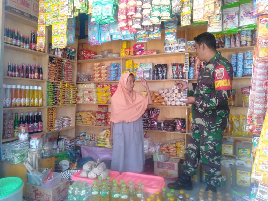 Polman,-Anggota TNI dari Kodim 1402/Polman yang bertugas sebagai Babinsa diterjunkan mengecek ketersediaan dan harga kebutuhan masyarakat, menjelang bulan Ramadhan di pasar tradisional di Polewali Mandar. Kamis (29/2/2024).