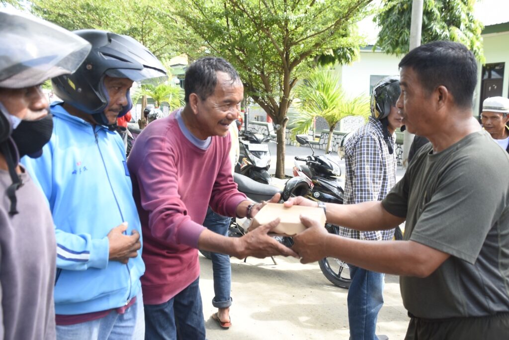 Prosesi pembagian dilakukan langsung oleh personel Korem 141/Tp kepada para warga yang membutuhkan sambil melakukan komunikasi sosial dengan menyapa dan memotivasi kebaikan. (Penrem 141/Tp).