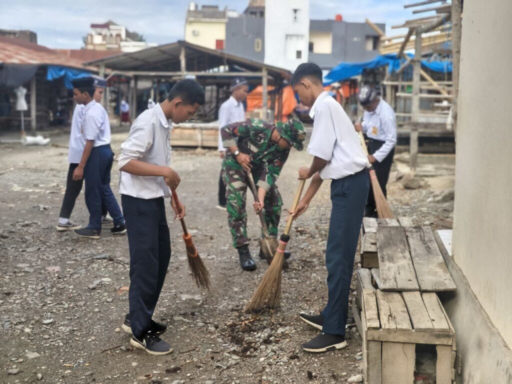 Sidrap- Danposramil Pitu Riawa Koramil 1420-05/Dua Pitue Peltu M. Ridwan bersama dengan personel Koramil dan Siswa/Siswi Madrasah Ibtidaiyah As'adiyah serta Siswa/Siswi SDN 1 Lancirang melaksanakan karya bakti pembersihan Pasar Tradisional Lancirang Kel. Lancirang Kec. Pitu Riawa Kab. Sidrap. Kamis (25/04/2024).