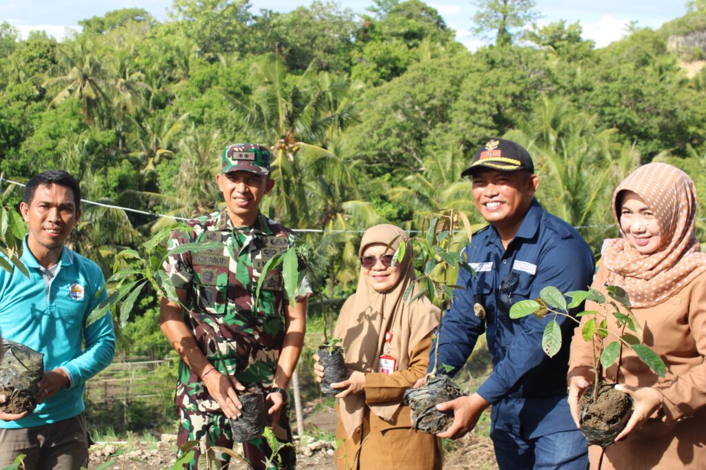 Majene - Dandim 1401/Majene Letkol Czi I Made Bagus Asmara Putra, S.T.,M.I.P. memimpin langsung kegiatan penanaman pohon buah dan pohon keras di lokasi kelompok tani Salabulo Kampus Hidayatullah Majene Kelurahan Tande Timur Kecamatan Banggae Timur Kabupaten Majene, Sabtu (04/05/2024).