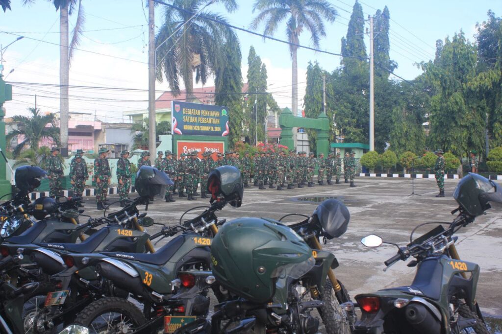SIDRAP -- Dalam rangka antisipasi bencana alam dan perkembangan situasi di wilayah Kabupaten Sidenreng Rappang, Kodim 1420/Sidrap menyiapkan satuan perbantuan di halaman Makodim 1420/Sidrap Jalan Jenderal Sudirman Kelurahan Majelling Wattang Kecamatan Marittengae Kabupaten Sidenreng Rappang, Kamis (25/04/24).