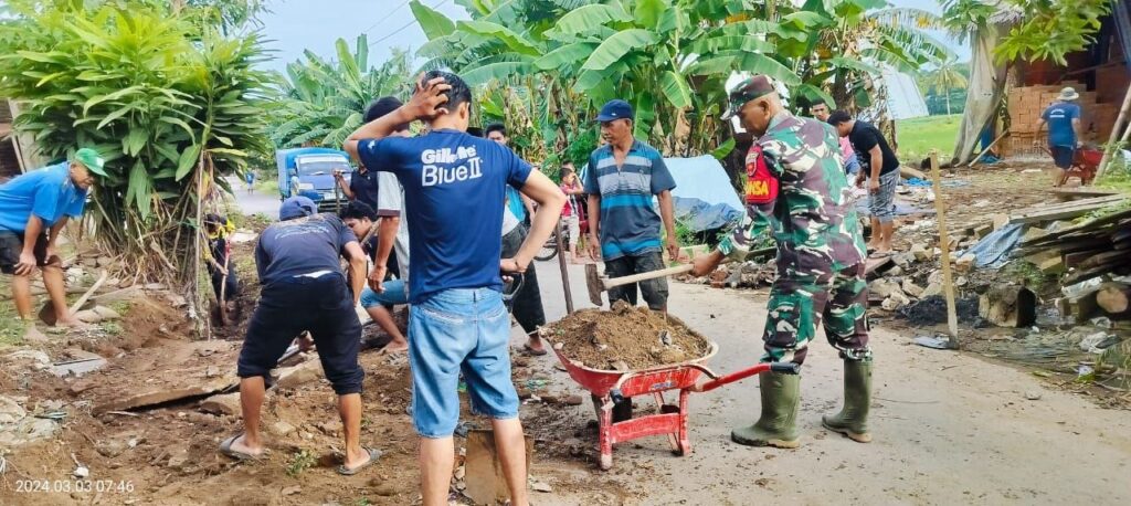 Dengan penuh kekompakan Babinsa bersama warga melaksanakan kegiatan karya bakti dengan mengedepankan kerjasama dan gotong royong sehingga kerjaan dapat dikerjakan dengan semangat dan tuntas.