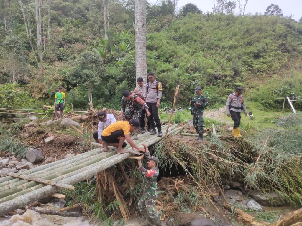 “Alhamdulillah, jembatan darurat sudah rampung. Bahkan sudah bisa dilalui kendaraan roda dua,” tutup Kapten Inf Rizal.