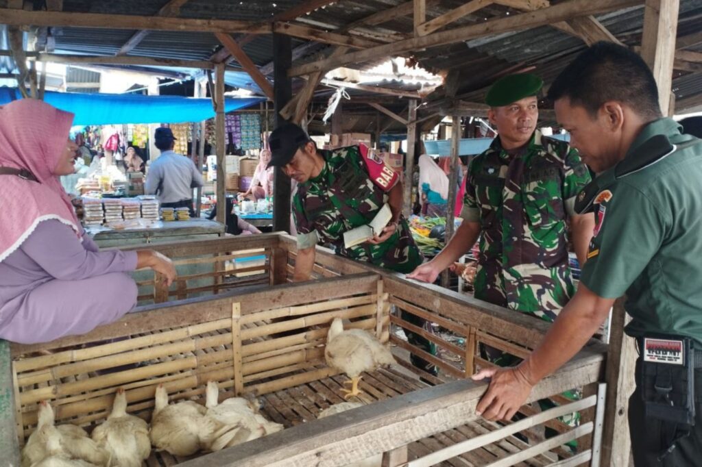 JENEPONTO - Personel Babinsa Koramil 05 Batang Kodim 1425 Jeneponto, melaksanakan kegiatan pemantauan harga sembako dan ketersediaannya, di Pasar Tradisional Tarowang, Desa Pao, Kecamatan Tarowang, Kabupaten Jeneponto. Rabu, 06/03/2024.