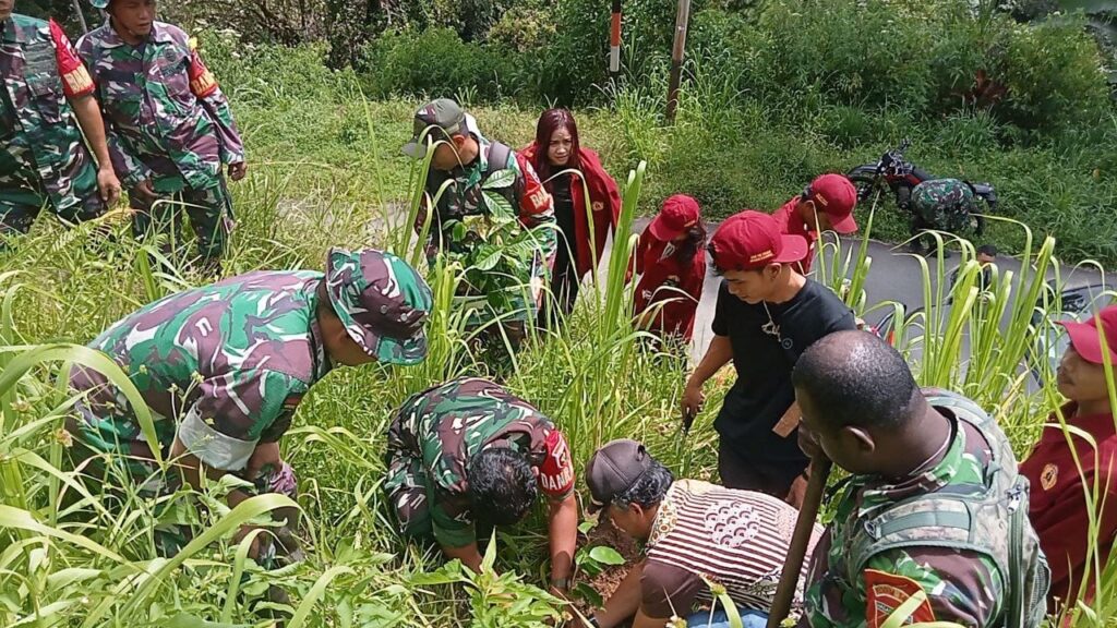 TORAJA - Kodim 1414/Tator, Personil Koramil 03/Rindingallo bersama mahasiswa KKN UKI Toraja menanam pohon di Dusun Kalang, Lembang Kapalapitu, Kec. Kapalapitu, Kab. Torut
