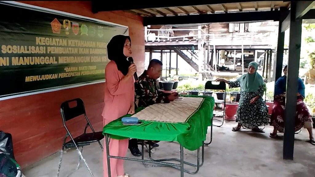 Pinrang_ Kegiatan ketahanan pangan dilaksanakan oleh Satgas TMMD ke-119 Kodim 1404/Pinrang dengan memberikan sosialisasi pembuatan ikan bandeng tanpa duri kepada ibu-ibu rumah tangga di Dusun Kapa Desa Siwolong-polong Kecamatan Mattiro Sompe Kabupaten Pinrang Provinsi Sulawesi Selatan, Jum'at (08/03/2024).