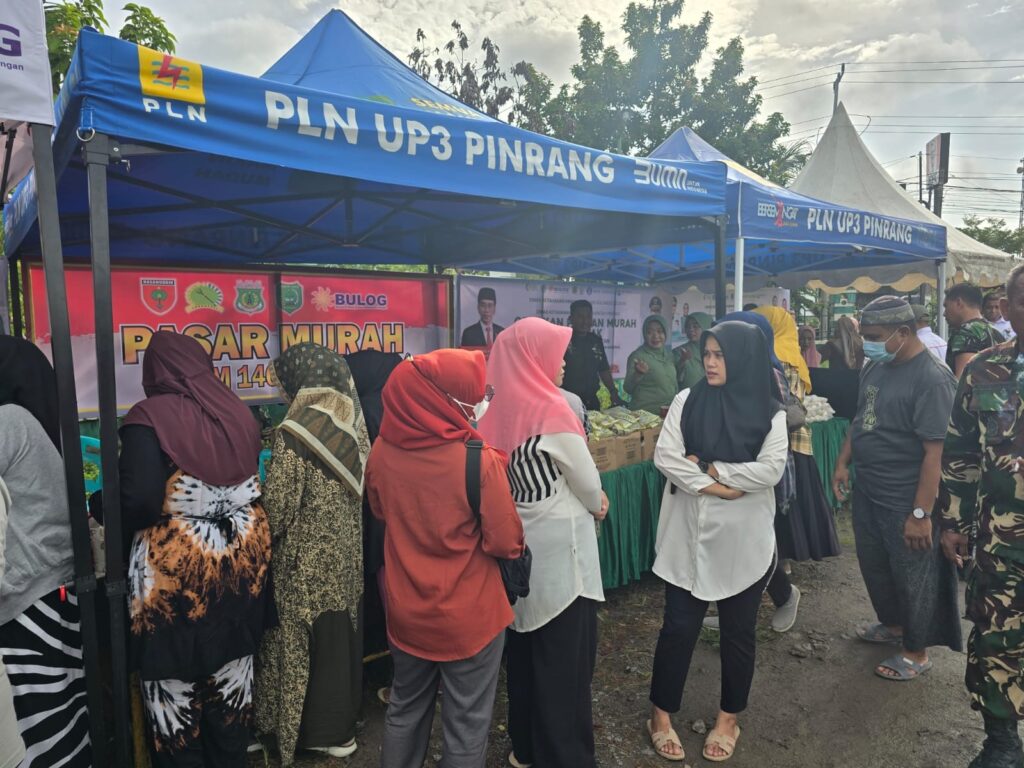 Pinrang_ Masyarakat Kabupaten Pinrang ramaikan pasar murah yang diselenggarakan oleh Kodim 1404/Pinrang bekerjasama dengan Pemda Kabupaten Pinrang di Kompleks Masjid Al-Munawir Kelurahan Maccorawalie Kecamatan Watang Sawitto Kabupaten Pinrang Provinsi Sulawesi Selatan, Rabu (06/03/2024).